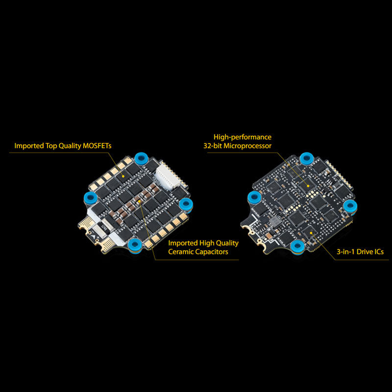 3-Large-size MOSFETs imported from Japan make the 4IN1 ESC have greater voltage/current endurance than the last generation (at high voltages). The use of high performance 32-bit microprocessors with operating frequency of upto48MHz, imported high quality ceramic capacitors, 3-ounce copper, 6 layers of PCBs guarantees less heat, higher efficiency and rapid response. Imported Top Quality MOSFETs, Imported High Quality Ceramic Capacitors, High-performance 32-bit Microprocessor, 3-in-1 Drive ICs.