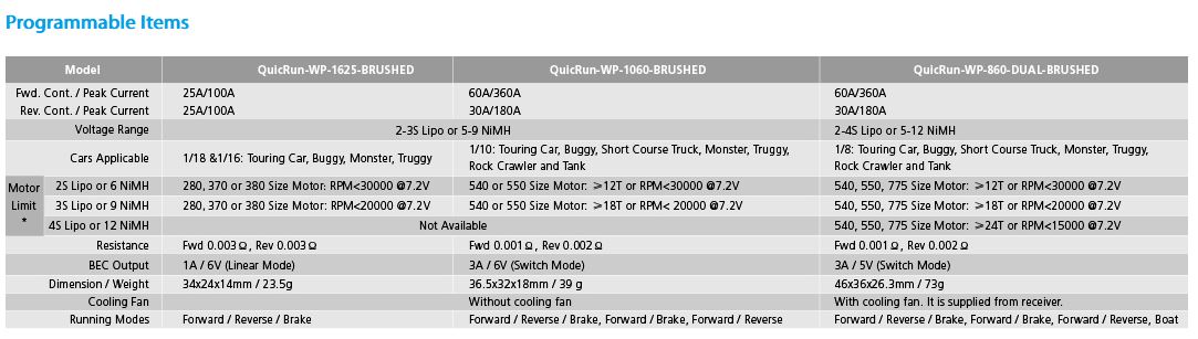 - 1 x Brushed ESC