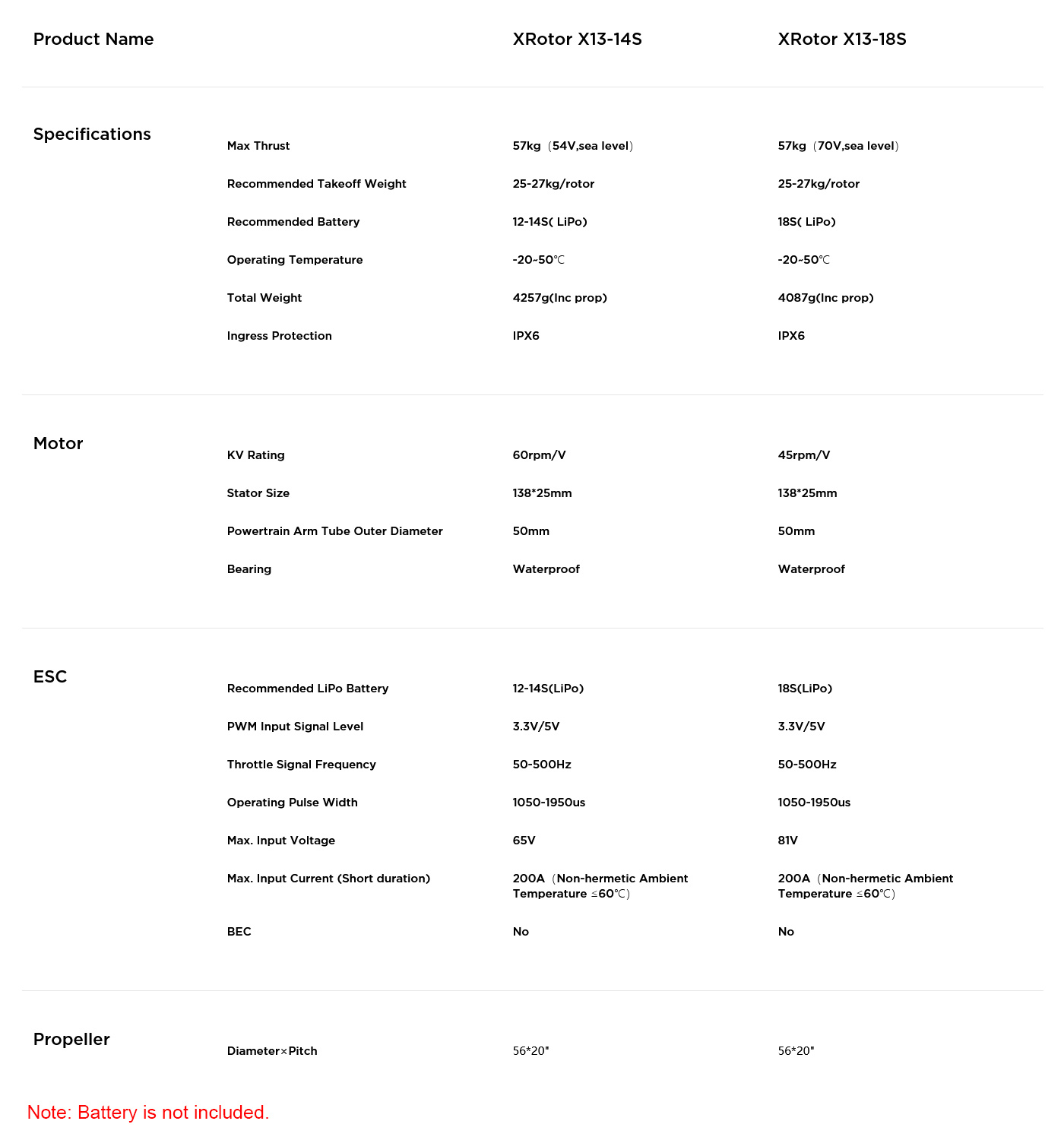 Hobbywing X13 Power System 14S-CW Motor + ESC + 56" Propeller 57KG Thrust for Agricultural Drones