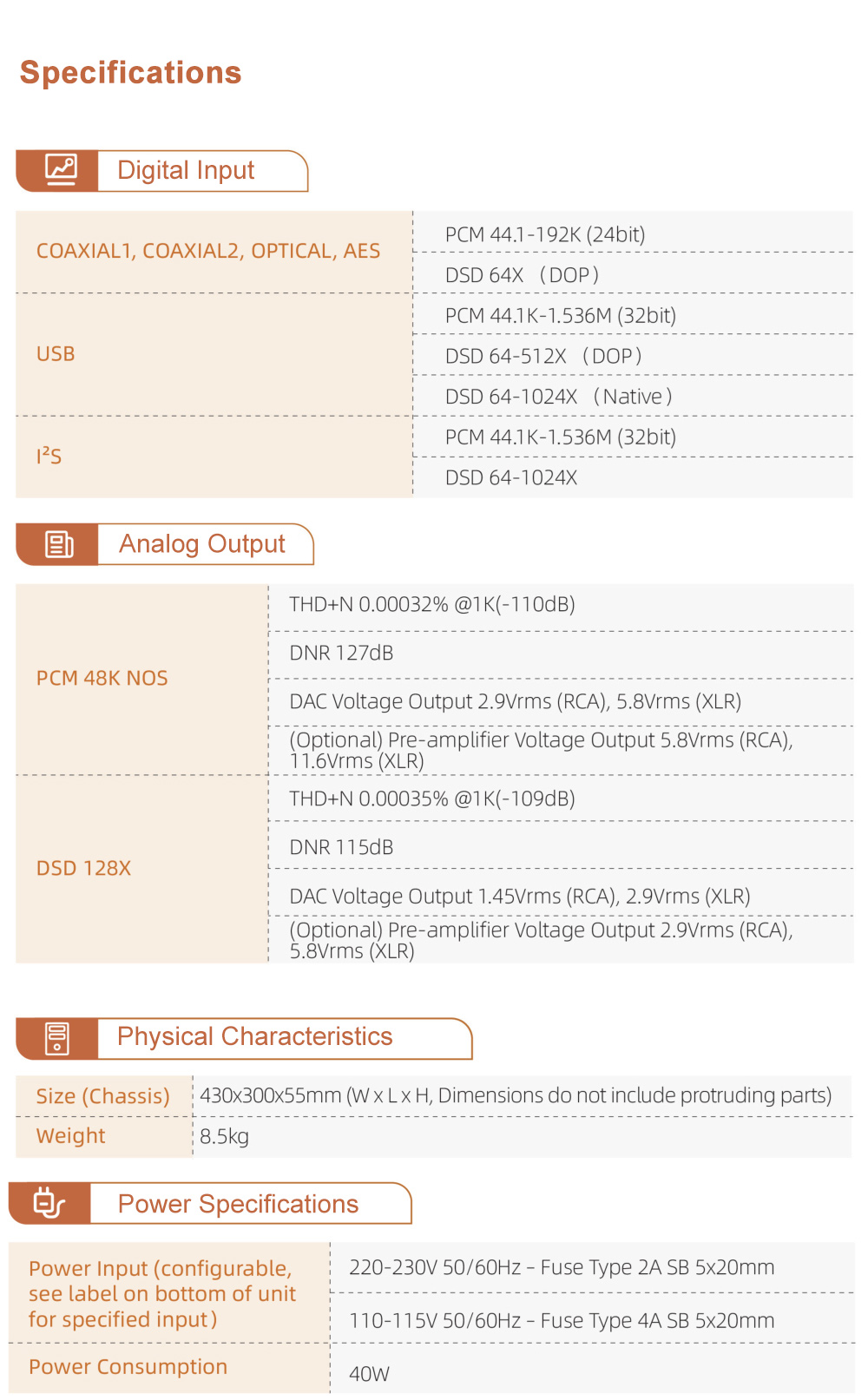 - Optional preamp module (installed in factories): A fully balanced, fully discrete analog pre-amplifier. It provides 84 steps, and each step is 1db of volume control.