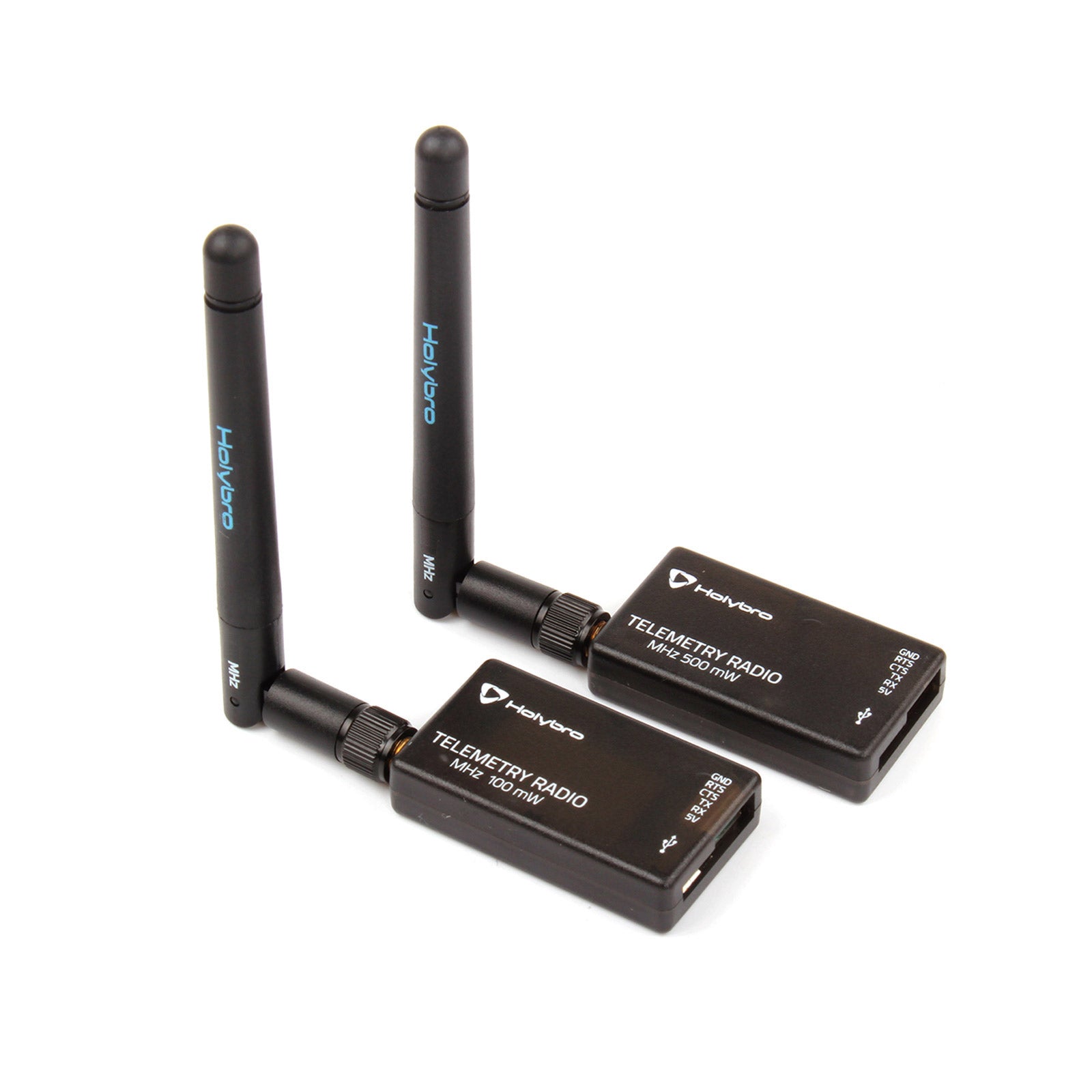 A Holybro Telemetry Radio is a small, light and inexpensive open source radio platform that typically allows ranges of better than 300m 'out of the box' (the range can be extended to several kilometres with the use of a patch antenna on the ground). The radio uses open source firmware which has been specially designed to work well with MAVLink packets and to be integrated with the Mission Planner, Copter, Rover and Plane.