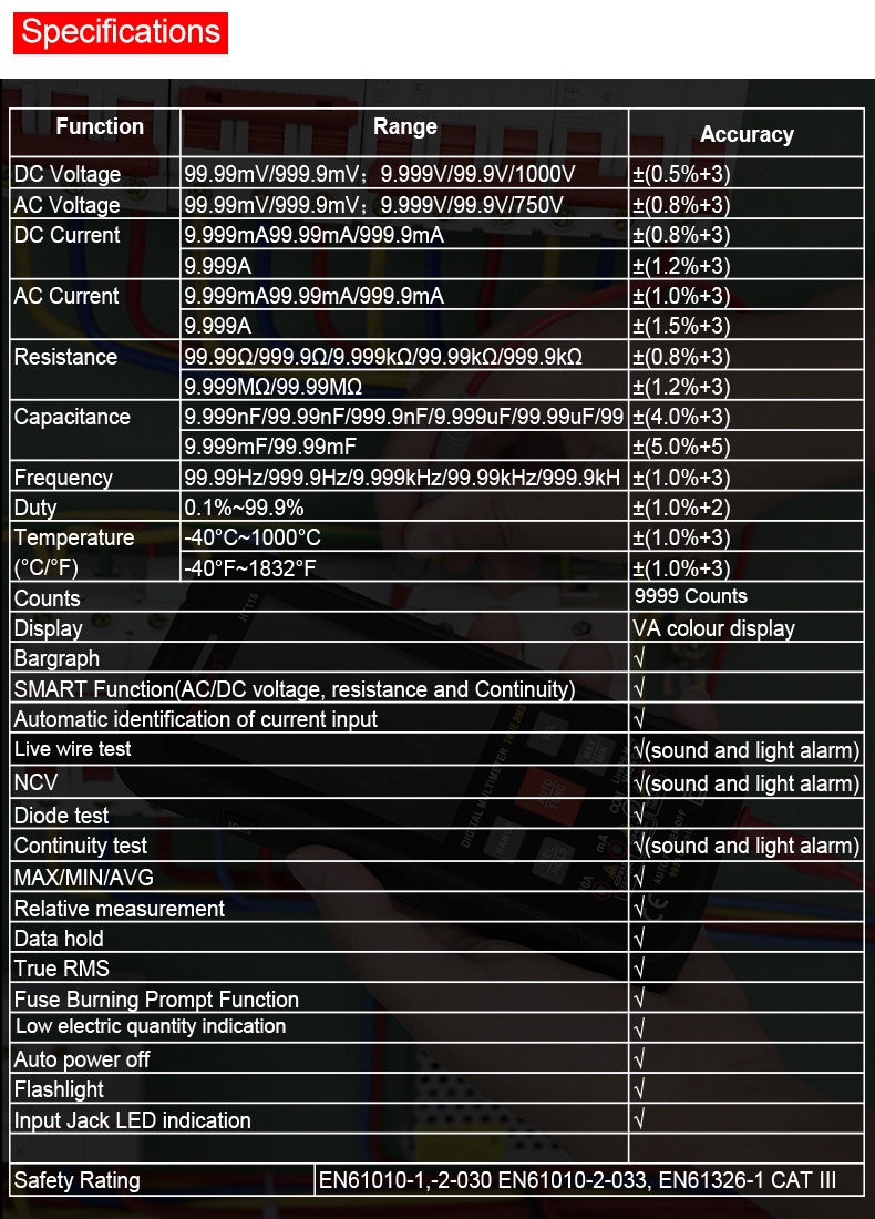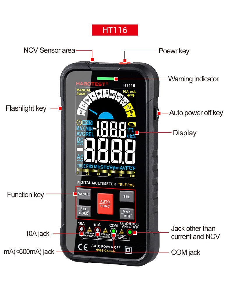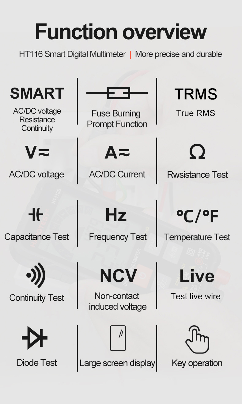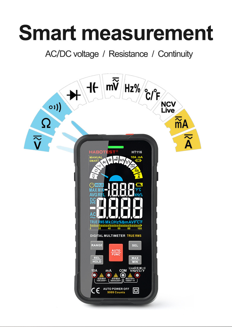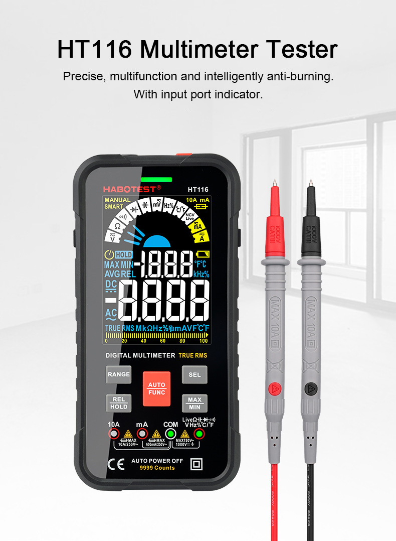 HT116 9999 Count Digital Multimeter Tester Anti-Burning TRMS Multimeter Supports Automatic Mode