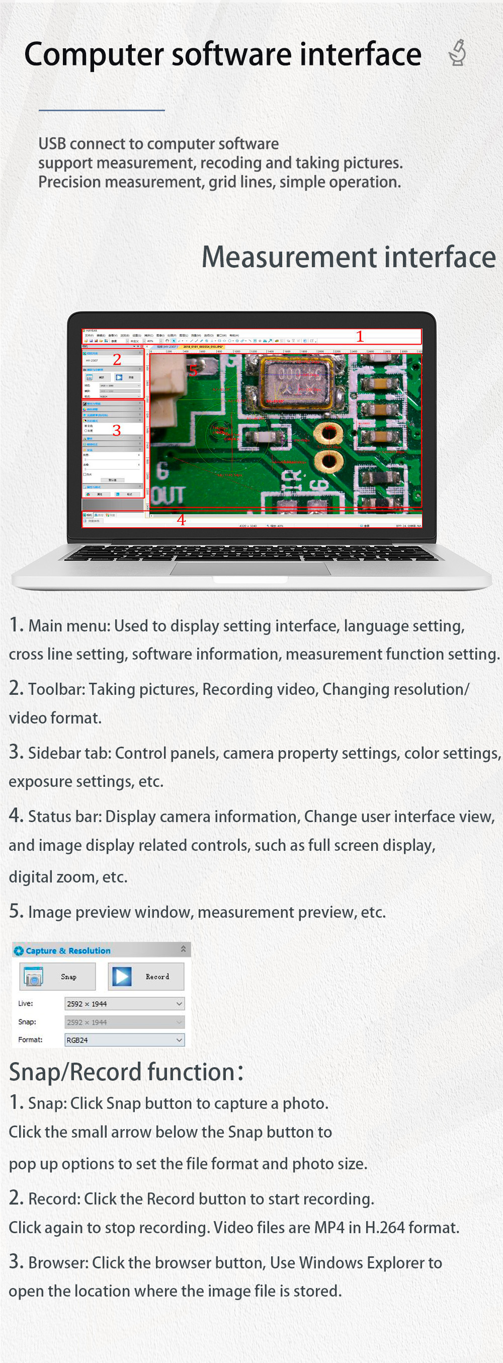 - PC Support:Windows / Mac / Linux, PC Software with Measuring Function