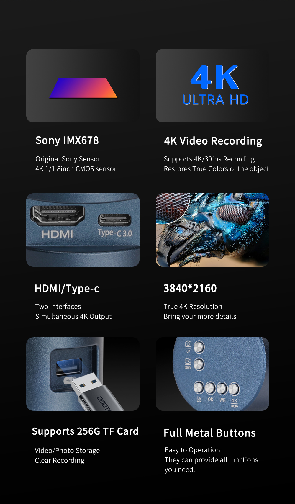 HY-6700 4K UHD Microscope Camera HDMI-compatible for Sony IMX678 Sensor Industrial Camera for Cellphone Repair and Soldering