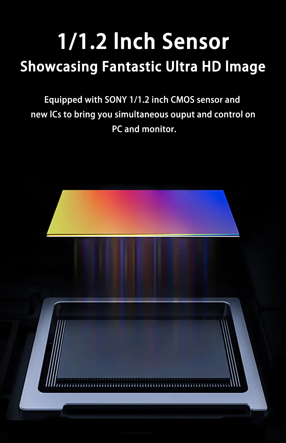 - HD camera with 8 megapixel CMOS sensor 1/1.2 inch, with HDMI-compatible USB port.