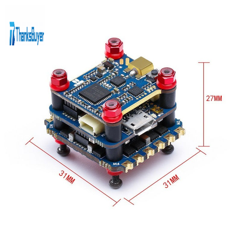 - STM32 F405 MCU FC w/OSD, integrated MPU6000 accelerometer and gyro;