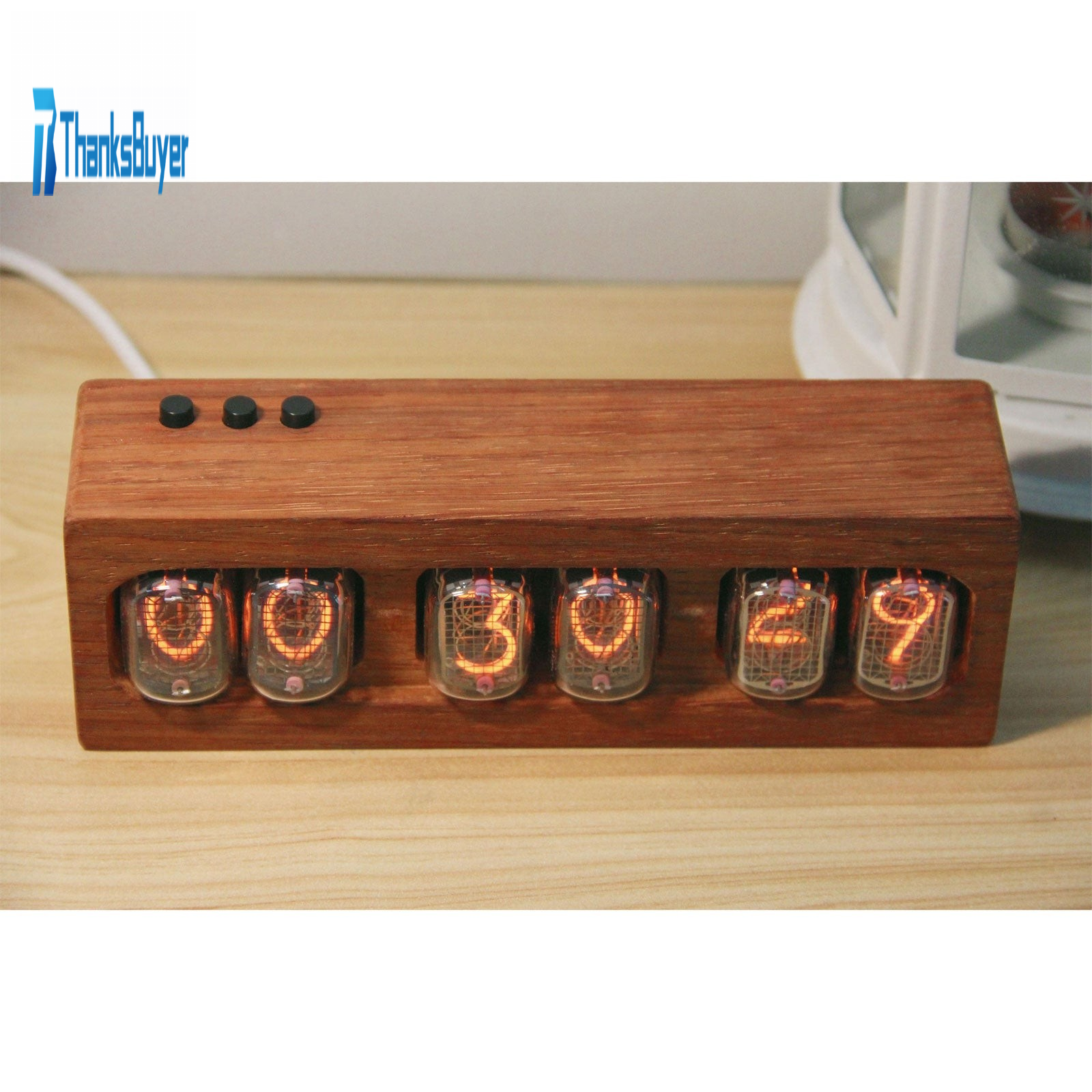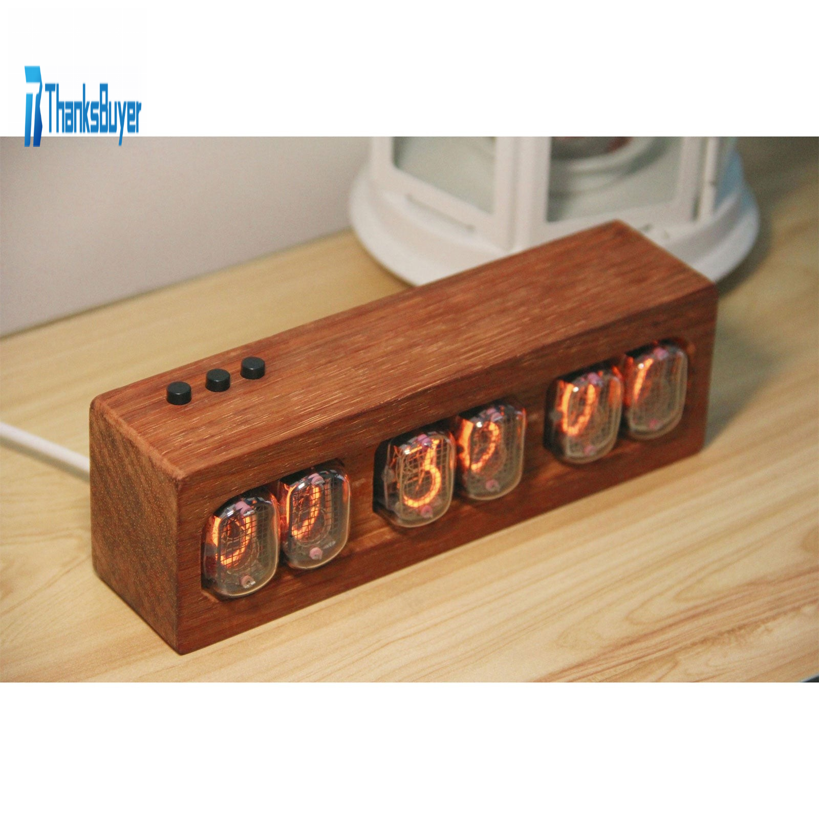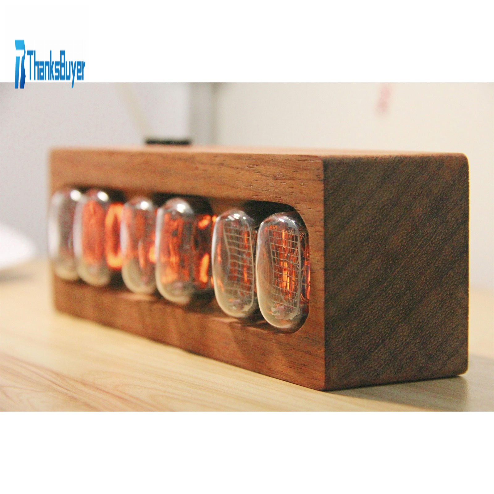 IN12 Nixie Tube Clock Creative Retro Desktop Clock Digital Clock DIY Decoration (African Padauk)