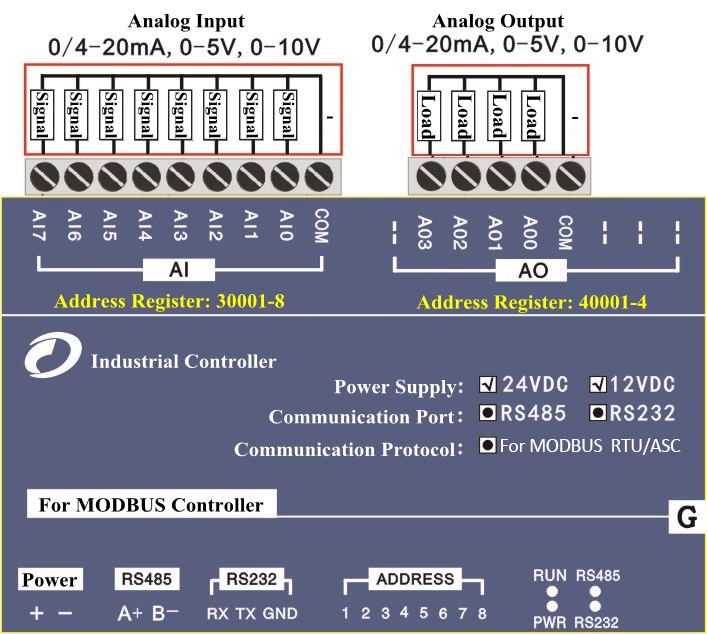 Support RS485 interface, for Modbus protocol touch screen, text screen.