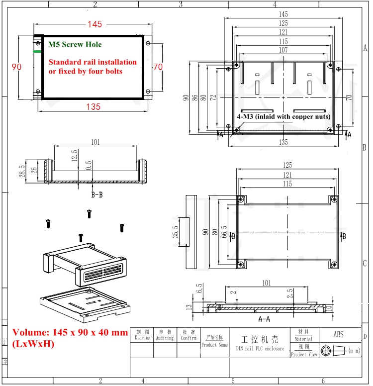 - Dimensions: Volume: 145 x 90 x 40 mm (LxWxH)