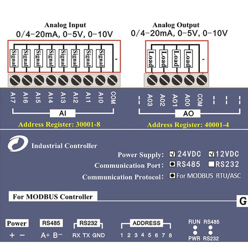 Industrial Control For Modbus RTU Siemens Mitsubishi PLC RTU-307A 8AI 4AO 4-20mA 0-10V (RS485)