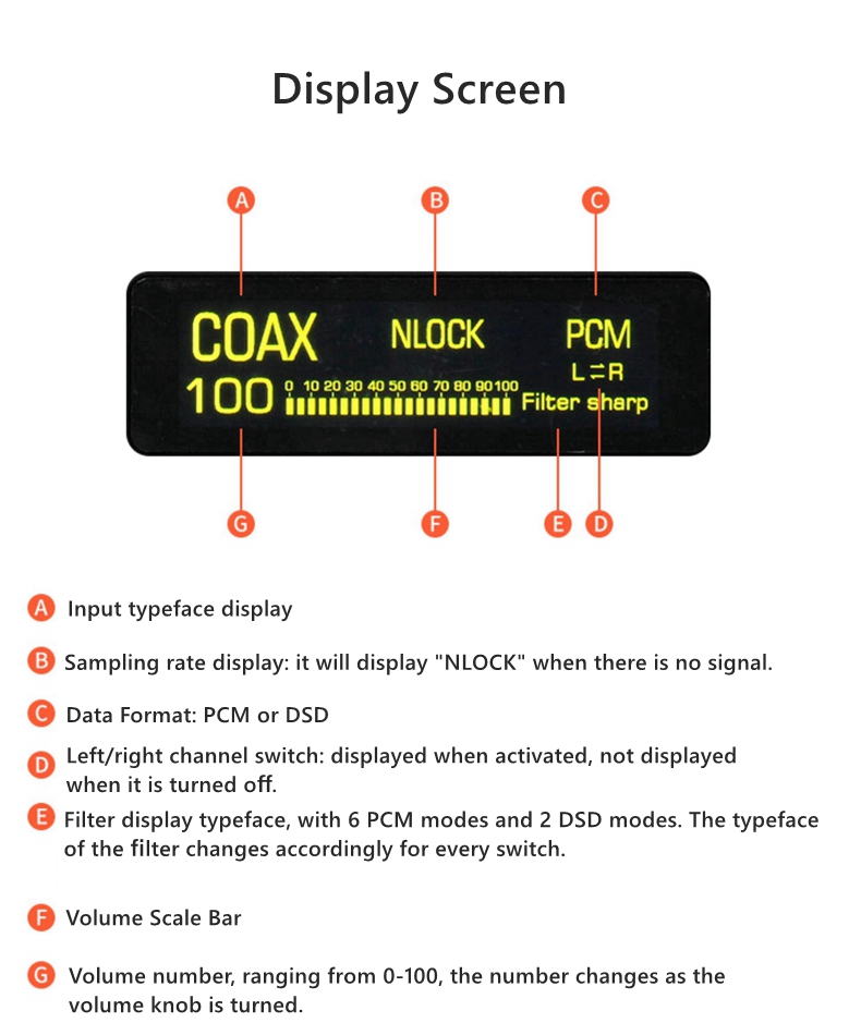 - When connecting the decoder to other devices such as ear amplifiers and power amplifiers, adjust the decoder's volume to 100 and use the back-end device to control the volume to achieve maximum dynamic effect.