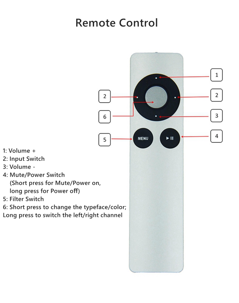 - The screen uses IPS LCD screen and for Apple remote control, which can control volume, mute, input switching, filter adjustment, and other functions