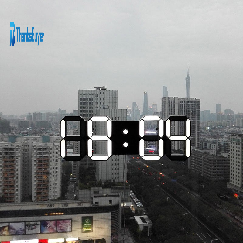 LED 3D Digital Clock Electronic Clock Remote Control Version w/ Alarm Clock Timing Function White Light Black Shell