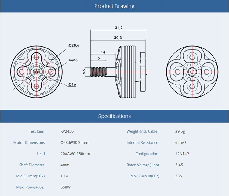 LF40 2450KV (Red) RC Brushless Motor for RC Multirotor 210 250 FPV Racing Drone