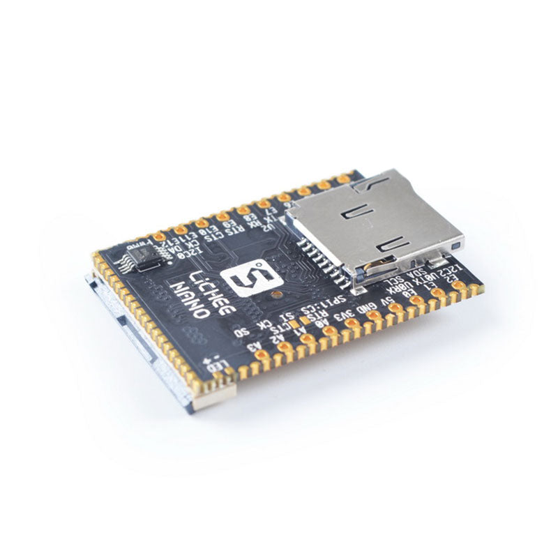 The F1C100s chip on the Lichee Nano development board is powerful. The chip has built-in 32MB DDR, SDIO, SPI, UART, Speaker, Mic and other interfaces, and supports external 8-32MB SPI Nor Flash. It supports 720P video output, supports H.264, MJPEG and other HD format decoding.