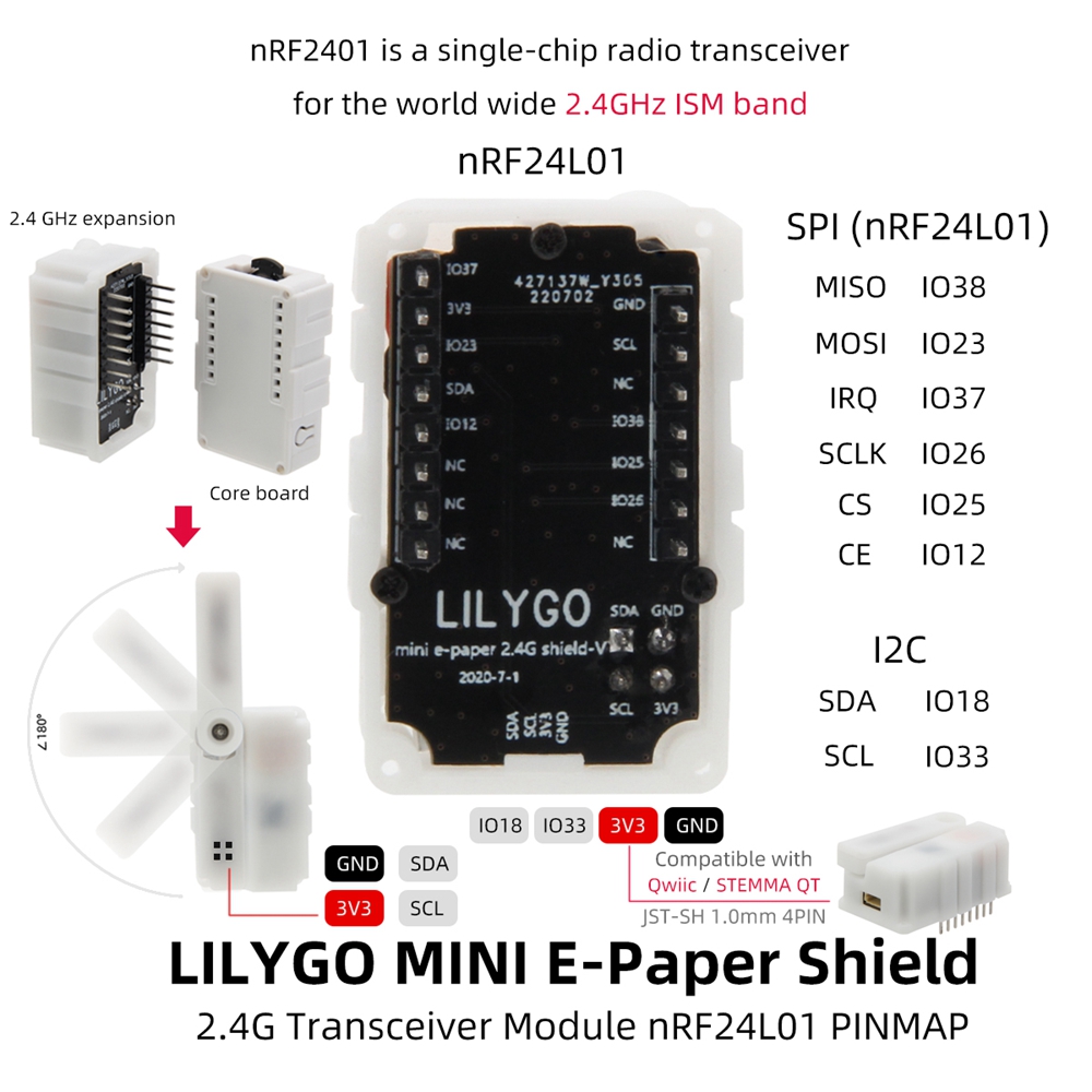 LILYGO MiNi E-Paper (H575) 2.4G Shield Expansion Board nRF24L01 2.4GHz Transceiver Module for ISM Frequency Band