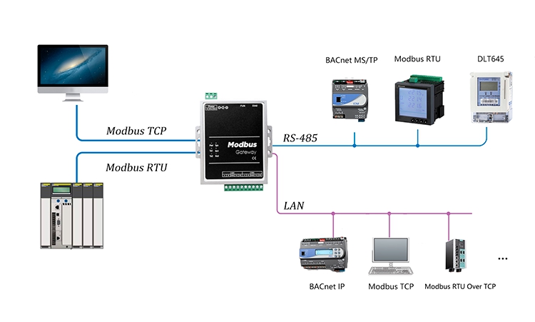 LMGateway201-M data acquisition gateway provides two RS-485 serial ports and one 10/100Mbps Ethernet port. It has embedded data acquisition drivers for Modbus, BACnet, DLT645, Siemens PLC, etc. It provides proprietary protocol-driven integration. As a Modbus RTU and Modbus TCP server, the gateway provides data to the outside world.