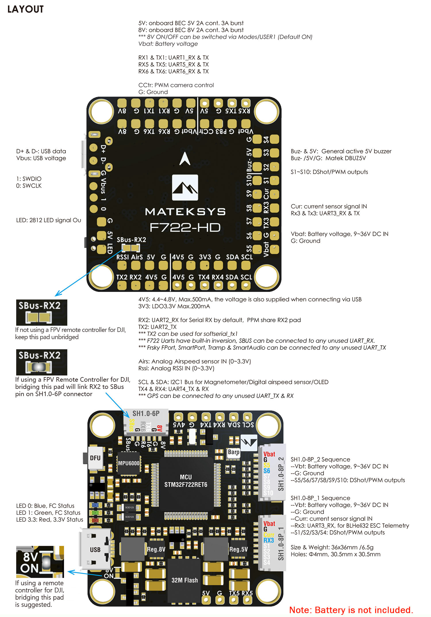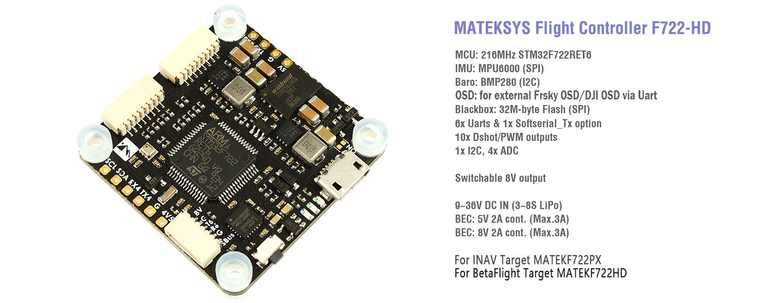 MATEKSYS F722-HD Flight Controller OSD 3-8S MPU6000 30.5x30.5MM For 5" RC FPV Racing Drones