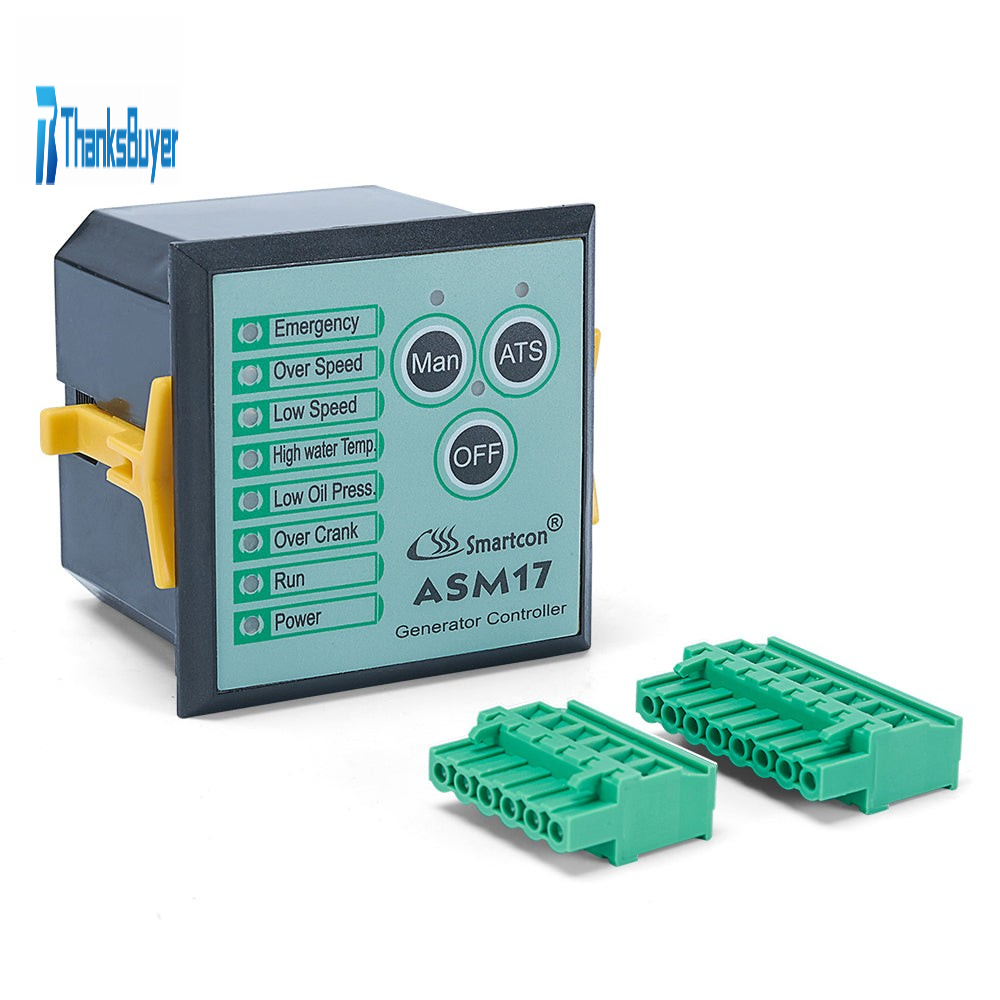 The module ASM17 is a low-cost generator controller equipped with auto start/stop functions, protections, alarm and annunciation etc. Monitoring and protections include: Emergency, Over Speed, Low Speed, High Water Temperature, Low Oil Pressure, Over Crank, Run, Power.