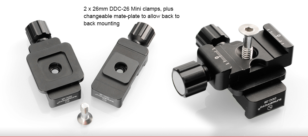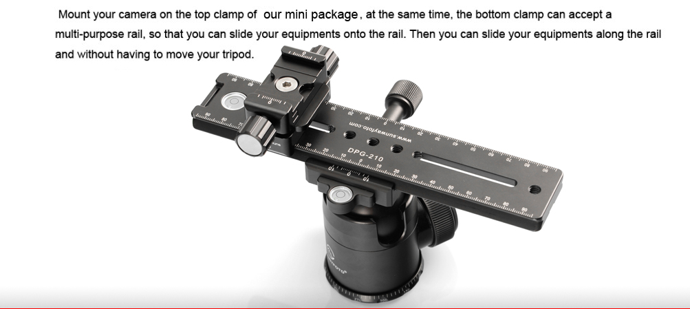 Note: Rails, ball heads, and other items pictured are not included, for demonstration purposes only.
