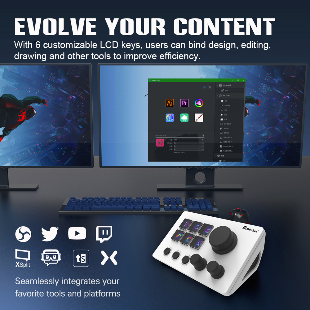 MiraBox Mbox N3E Stream Deck 6-Key Visual Keyboard Wired Custom Keyboard (Black) for OBS PS Twitter