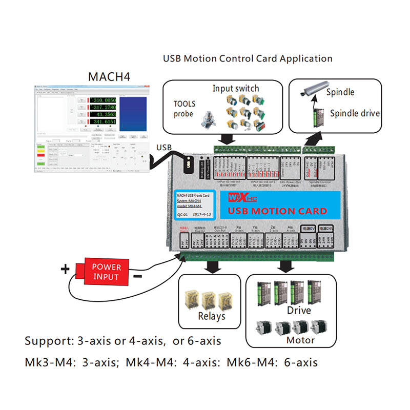 MK6-M4 MACH4 6-Axis CNC Breakout Board 2000KHz USB Motion Card for Engravers Lathe Machines