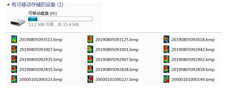6. Computer copy pictures: Use a Micro USB data cable to connect to a computer, and it will be automatically recognized as a mobile disk. The image file name format is: year+month+day+hour+minute+second.bmp. Note: The computer operation is limited to deleting or previewing pictures, please do not place other files on the mobile disk, and do not edit and modify the pictures on the mobile disk. It is recommended to fully charge it and turn it off before connecting to your computer.