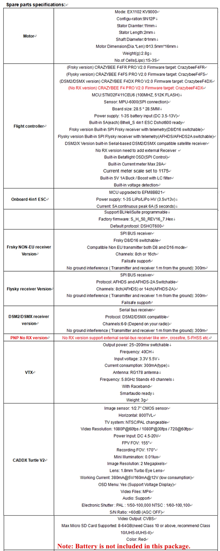 - 1 x Caddx Turtle v2+1080p 60fps DVR