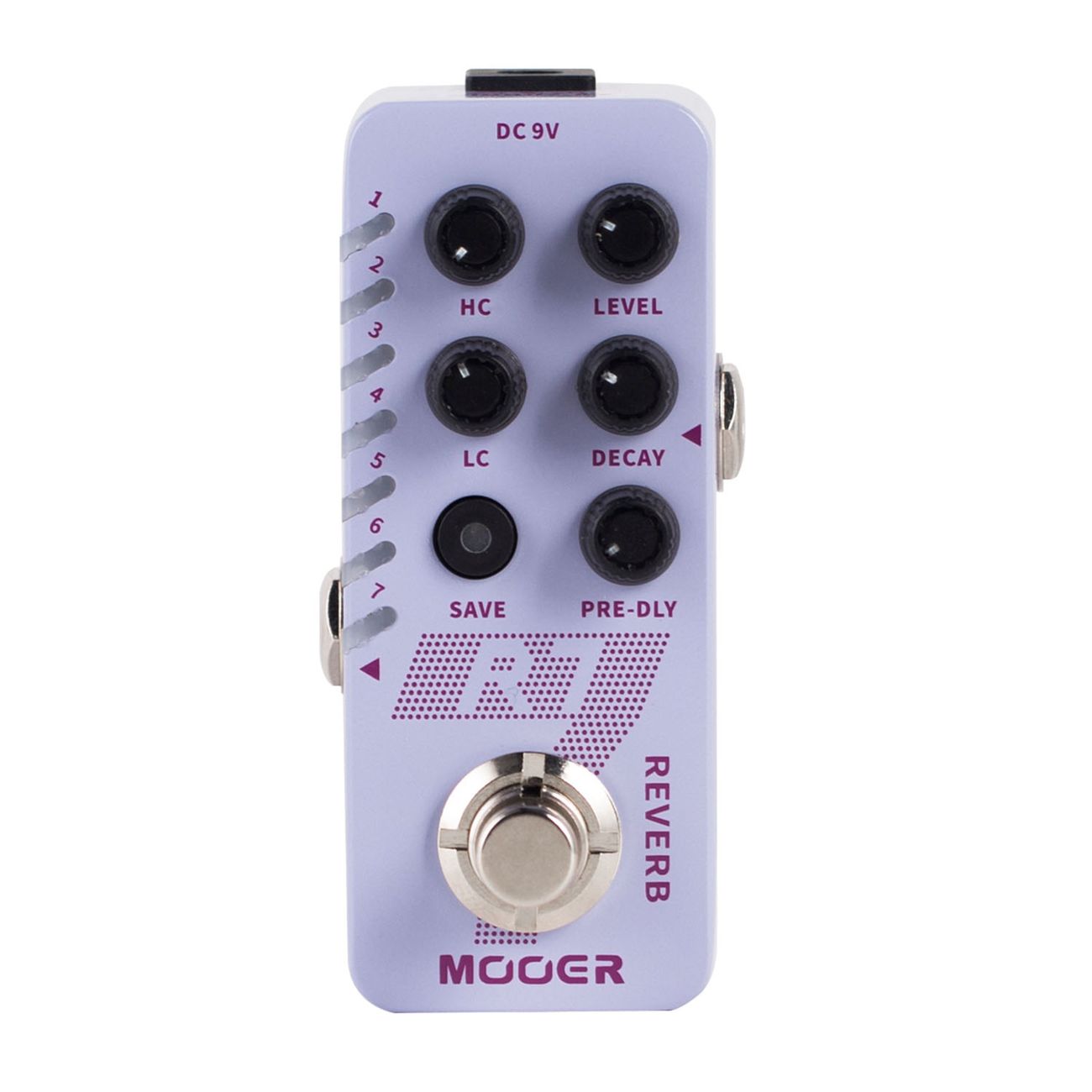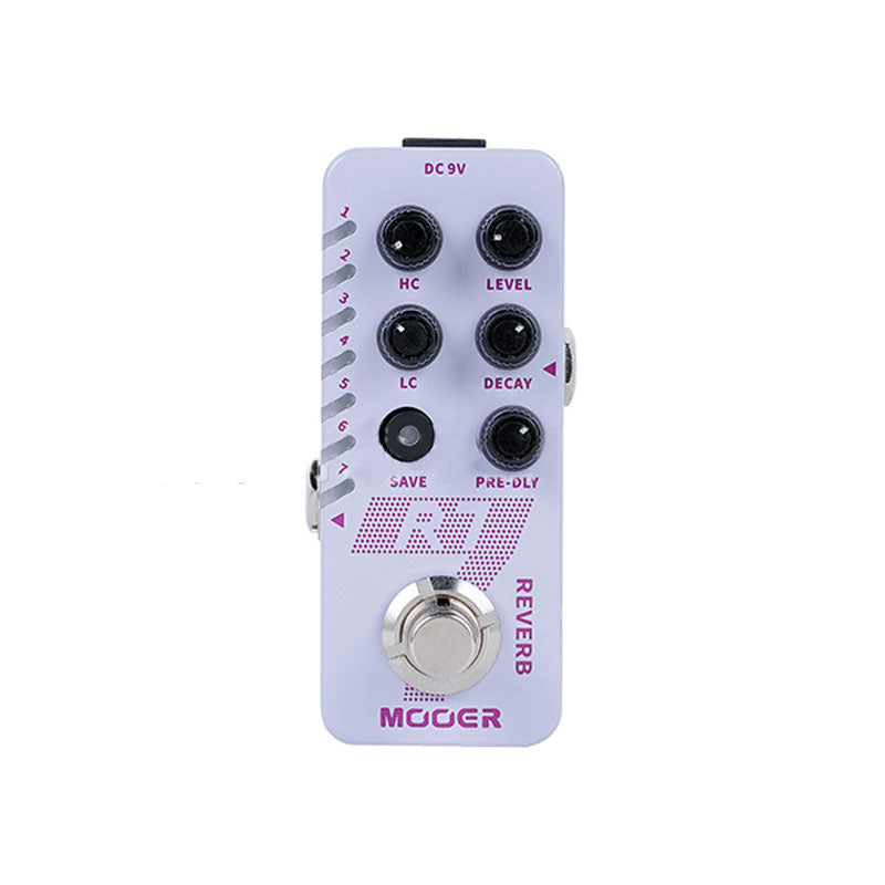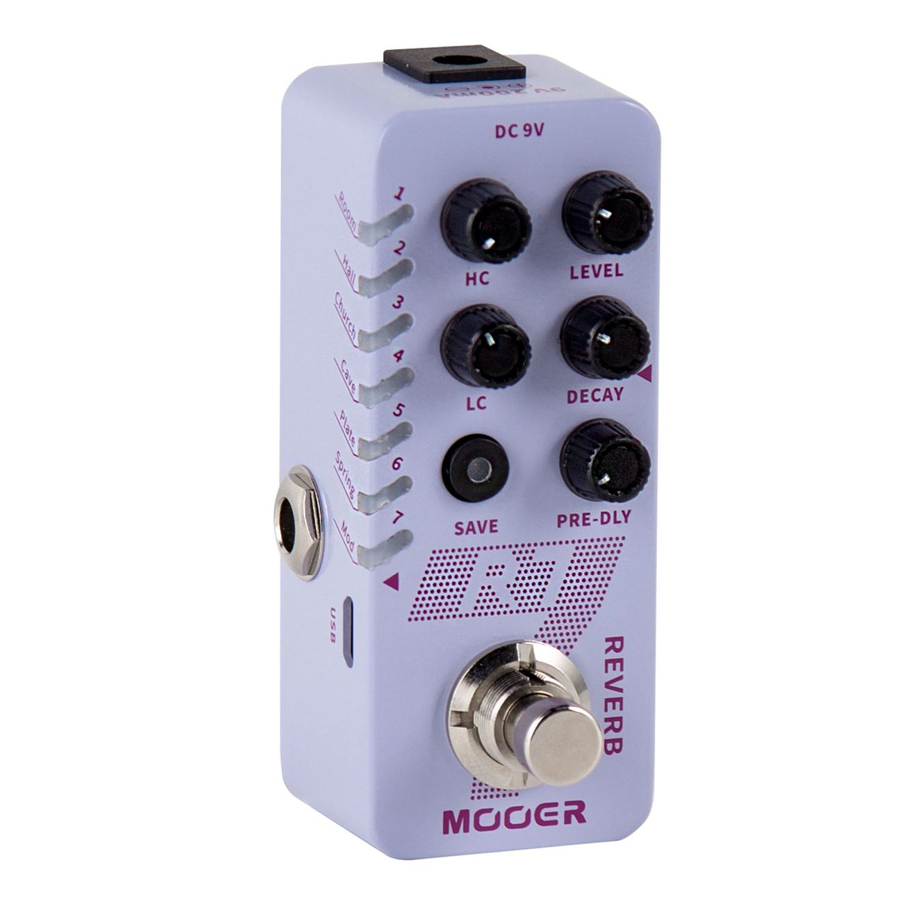 - MOOER R7 digital reverb pedal brings rich reverb sound to New micro series. Based on a set of unique reverberation algorithms, R7 contains seven reverberation effects from Church to Cave. High and low-cut controls allow users to trim redundant frequencies and freely adjust tones, while the built-in tracking function can switch between normal mode and tracking on mode to make the effect fade out naturally. Of course, the settings of each effect can be saved in different preset slots.