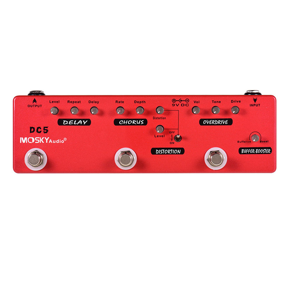 MOSKYAudio DC5 5-in-1 Multi Effects Pedal (Delay/Chorus/Overdrive/Distortion/Buffer-Booster)