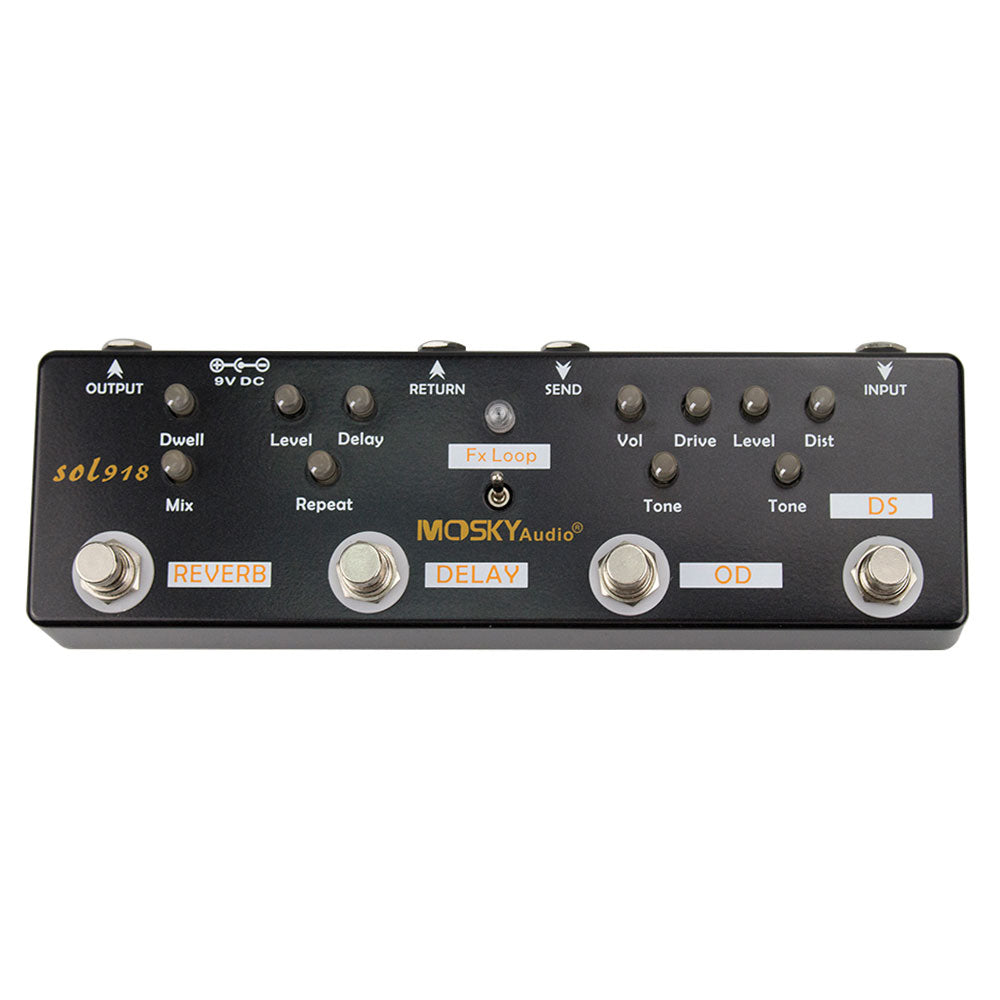 MOSKYAudio SOL918 5-in-1 Multi Effects Pedal (Distortion + Overdrive + Delay + Reverb + FX Loop)