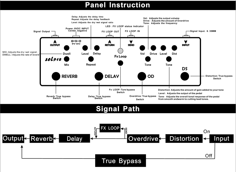 MOSKYAudio SOL918 5-IN-1 Multi-effects Pedal Reverb/Delay/FX Loop/Overdrive/Distortion Music Effects Pedal