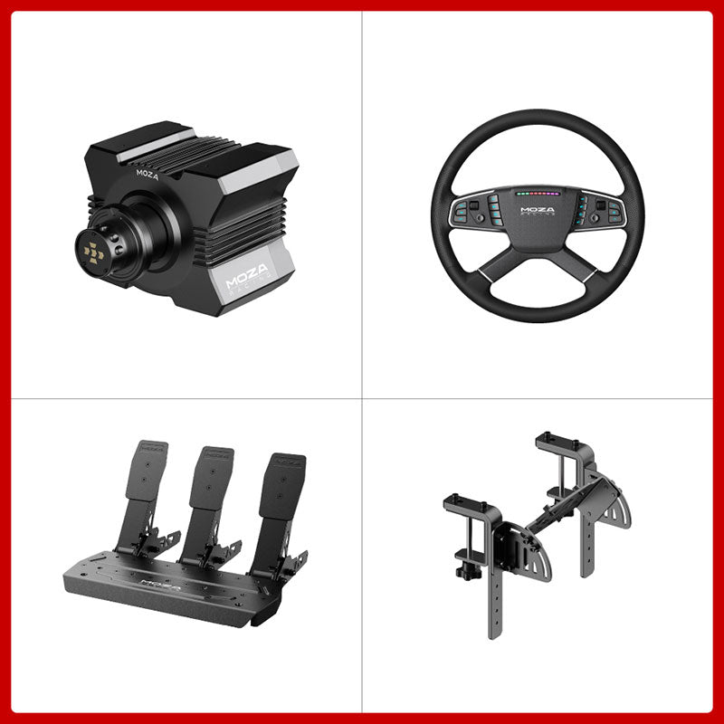 MOZA R5 5.5Nm DD Wheel Base + 15.8" TSW Truck Wheel + 3-Pedal SRP Lite + Table Clamp for TSW Truck Wheel