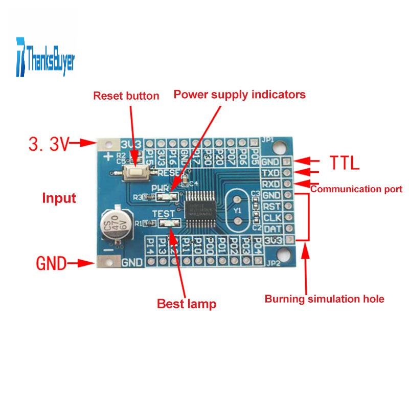 - IO port, power input, programming hole, and serial port are all exported for easy development.