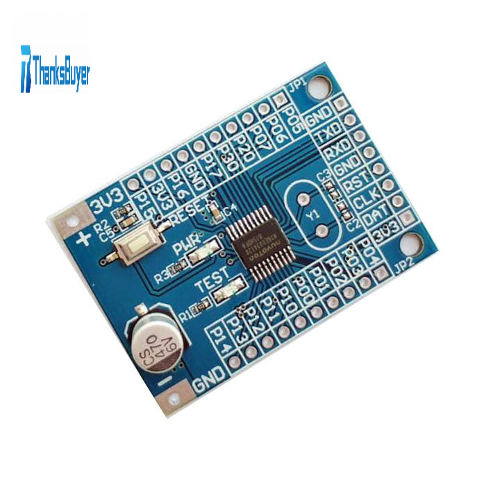 STM8S003F3P6: a total of 20 pins, supporting up to 16 GPIOs and 16 external interrupts. 2pcs 16-bit timers [TIM1 / TIM2] can output up to 3 PWM signals. 5 ADC channels support SPI / I2C / UART. 8KBYTE FLASH, 1K RAM, 128 BYTE EEPROM. With built-in 16M high-speed oscillator, WDG and so on.