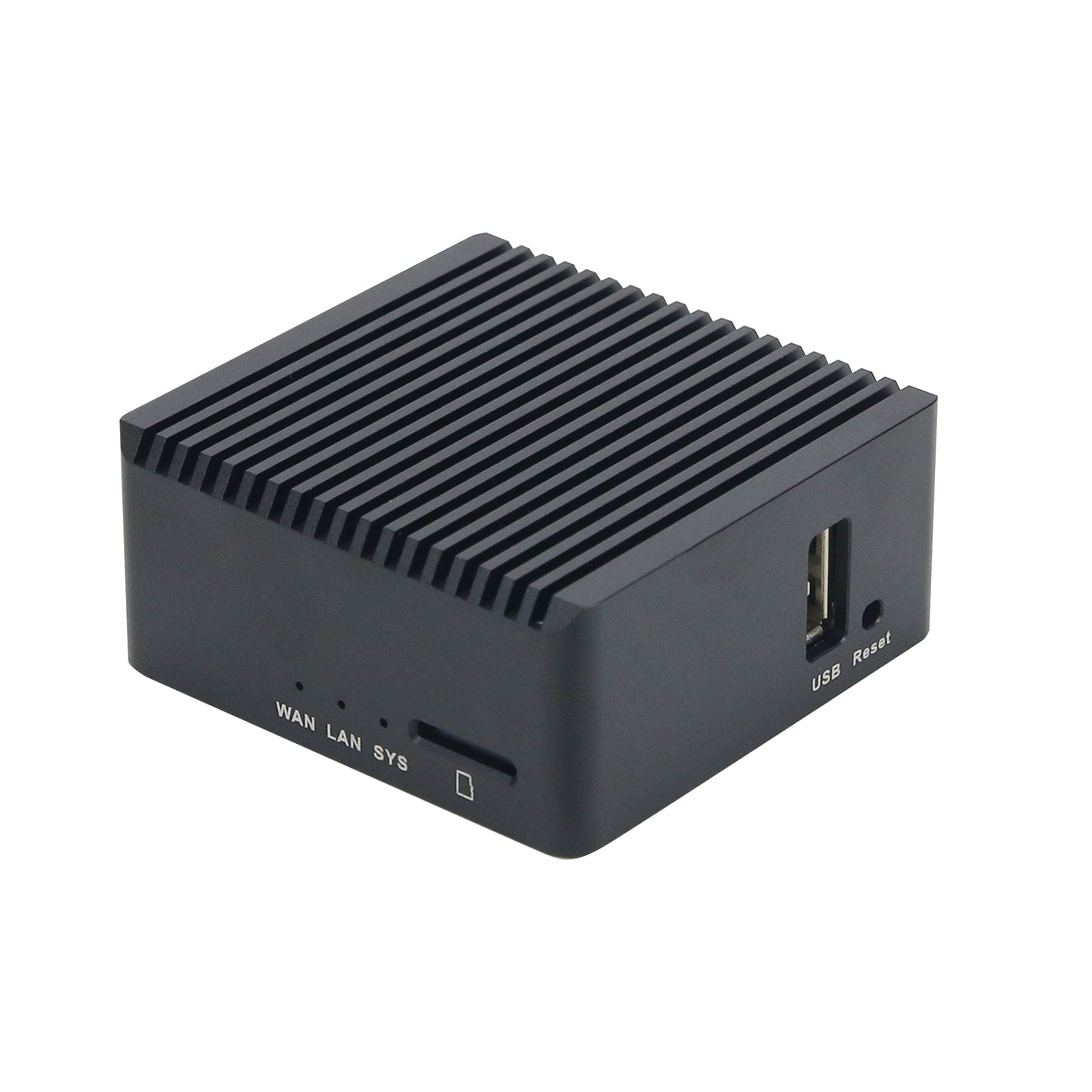 It uses a high-performance quad-core A53 processor RK3328 as the main control. The default operating frequency is 1.2GHz and 1GB RAM. It has two true dual Gigabit network interfaces, and uses RK805 power management chip to support dynamic configuration and voltage regulation. It also has one USB 2.0 interface, which can be used to expand 4G module, USB camera, USB WiFi and others.
