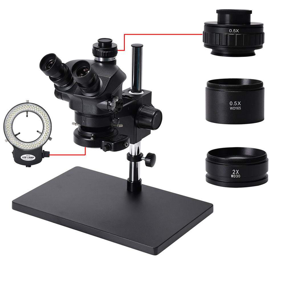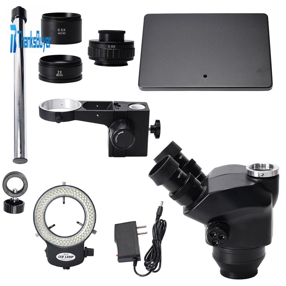 New 3.5X-100X Simul-Focal Trinocular Microscope Stereo Microscope w/ Adjustable 144-LED Ring Light Kit