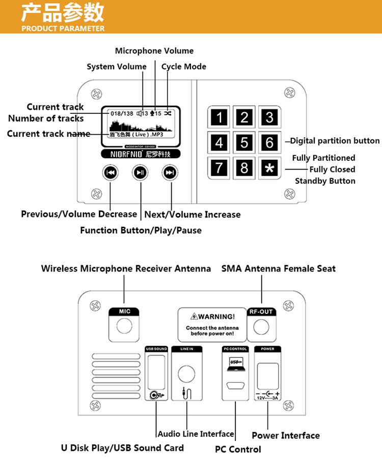 NIO-CD1000 FM Broadcast Transmitter Kit Main Host with Two Speakers Without Wireless Microphones