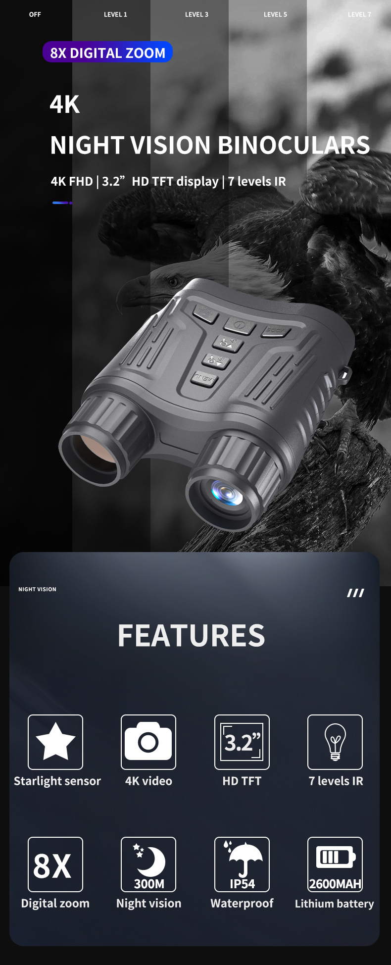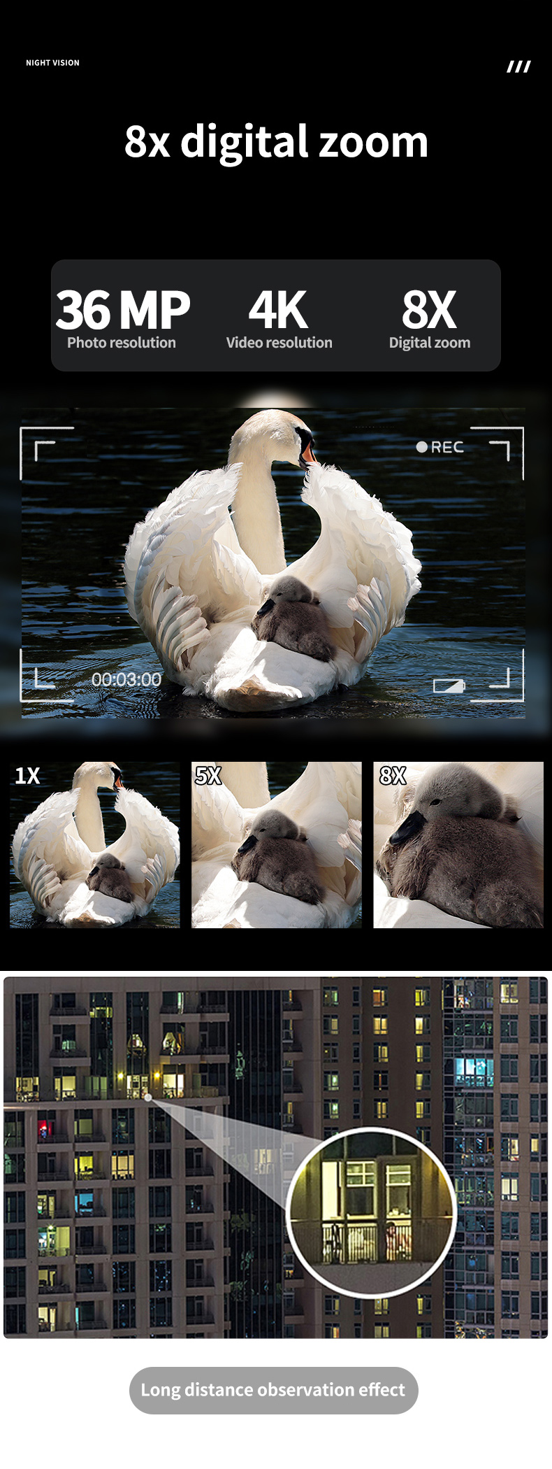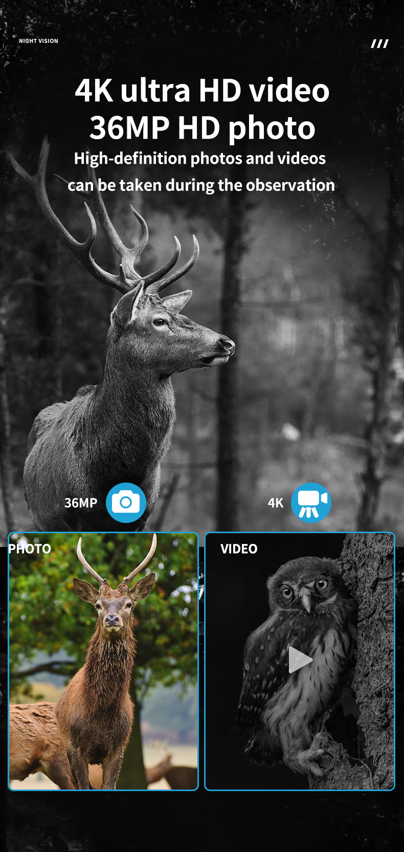 - Binocular night vision enables 4K ultra clear video