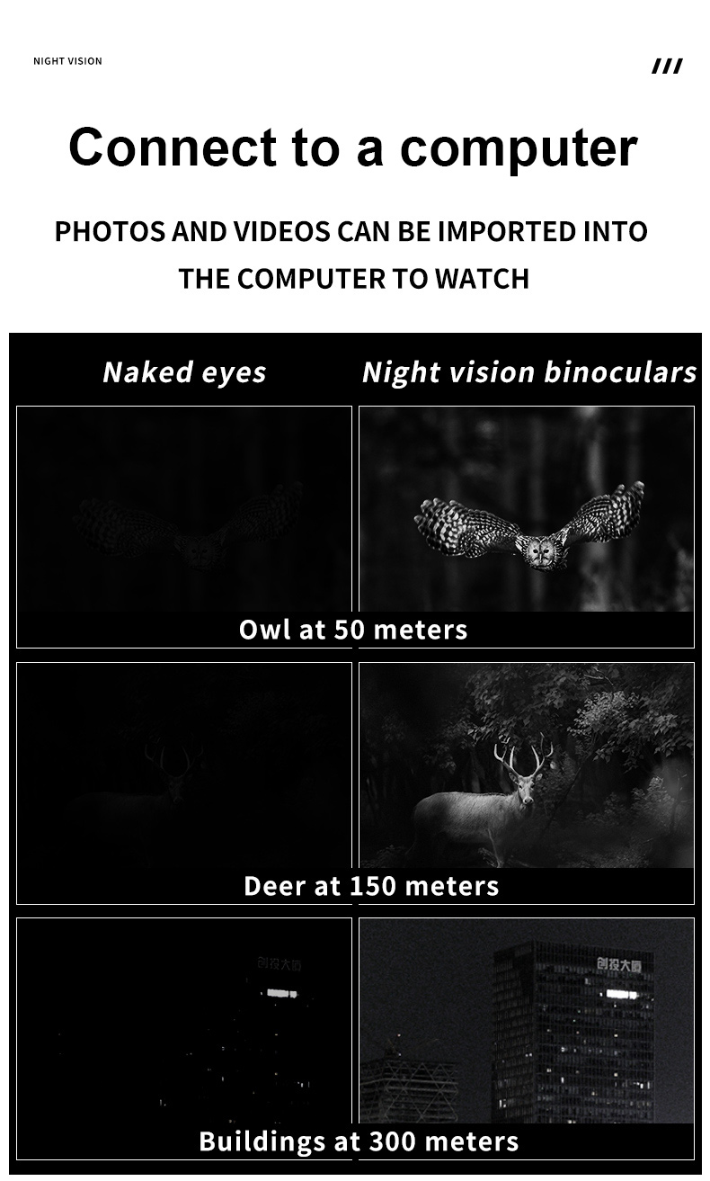 - Viewing distance in complete darkness is up to 300 meters
