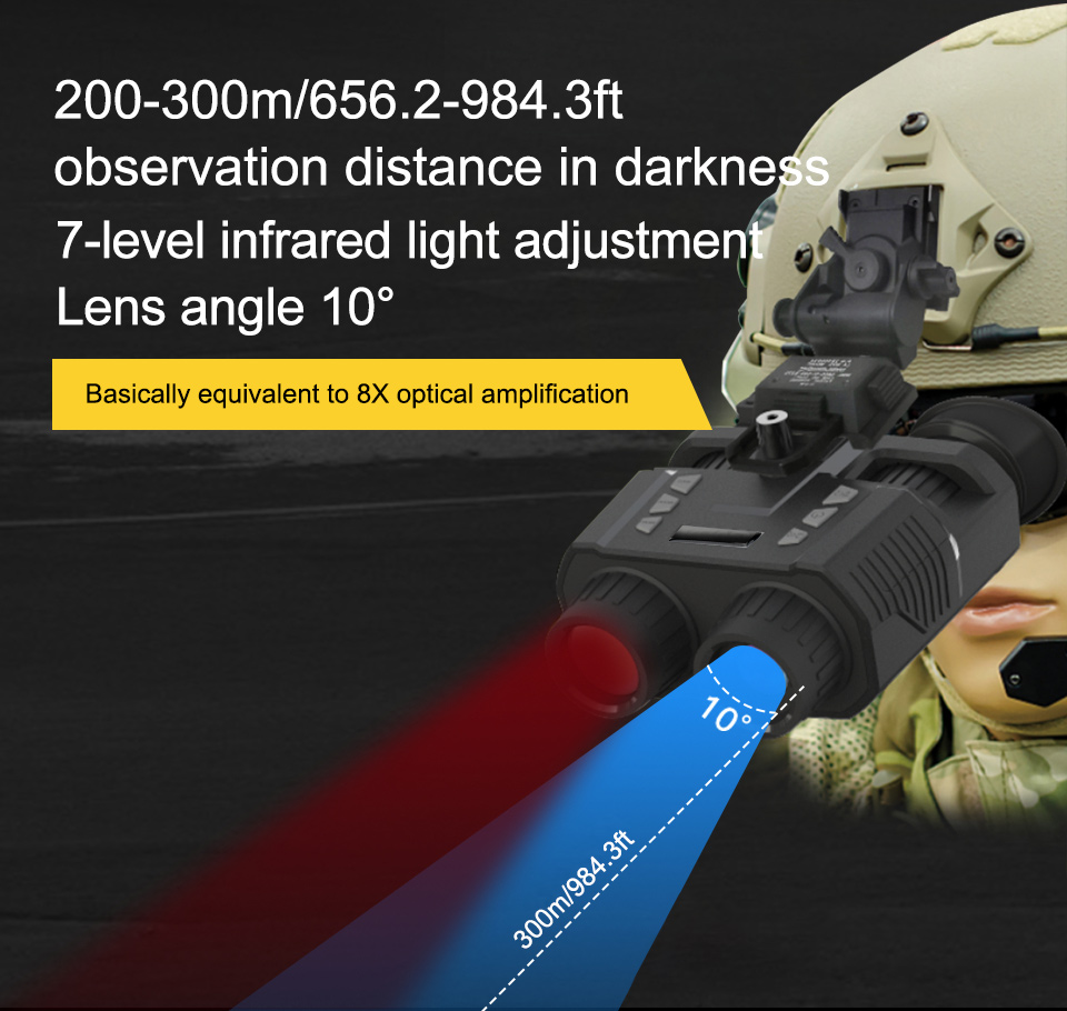 200-300m/656.2-984.3ft observation distance in darkness; 1m/3.3ft to infinite observation distance is weak light.