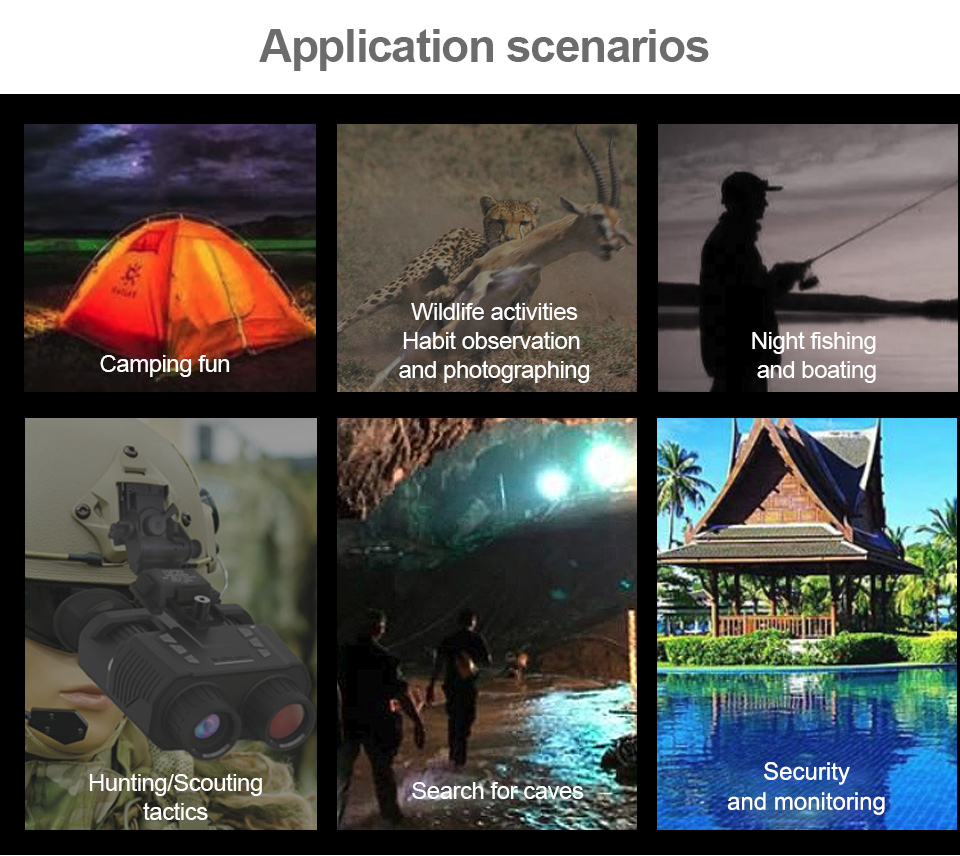Tactics, reconnaissance, hunting, security and surveillance, camping, cave exploration, night fishing and boating, wildlife observation and photography, etc.