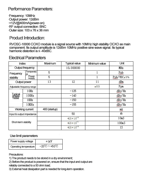 The main indicators of internal crystal oscillator used can refer to our RVOSC-10000 OCXO module: