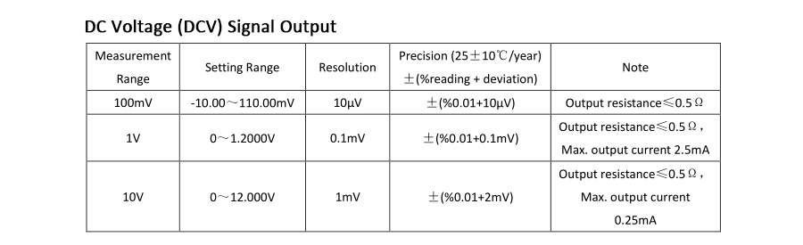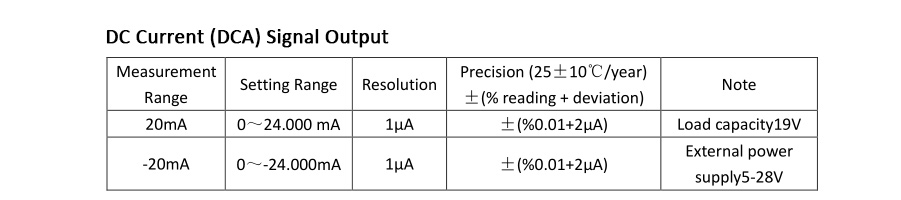 - High-precision and multifunctional sources: DCV and DCA output has a high precision and high stability. It can also output DCV, DCA, resistance, RTD, TC and frequency