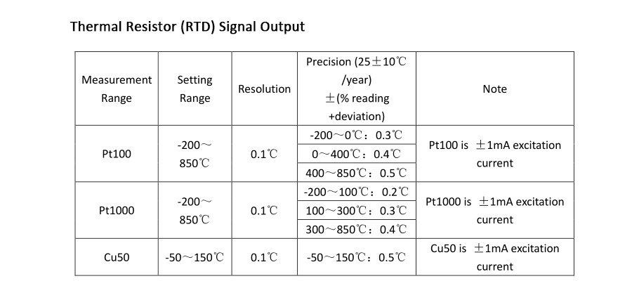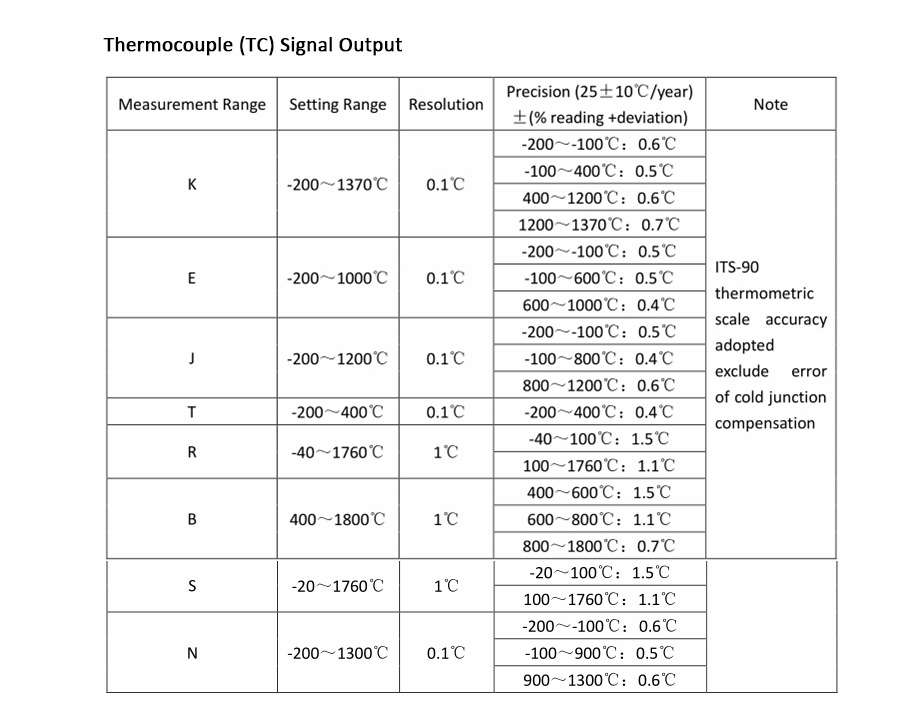 - Room temperature compensation: When the thermocouple signal is output, users can set fixed compensation, one-time compensation and real-time compensation modes