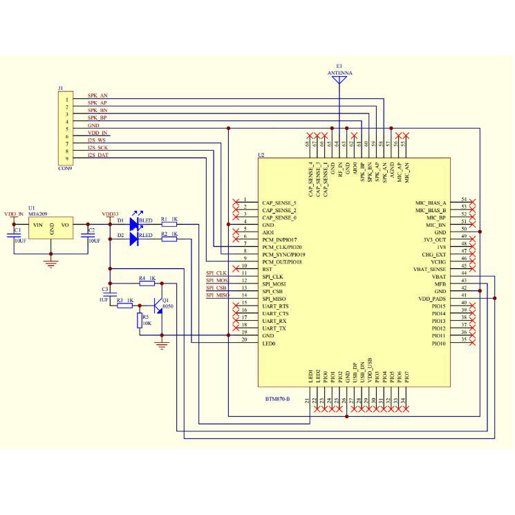 - BTM875-B Bluetooth module (CSR8675 Bluetooth chip)