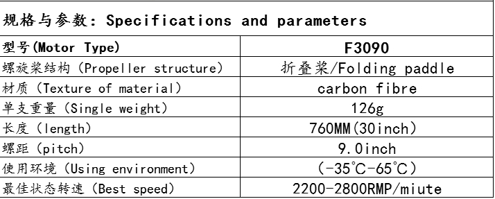 - F3090 folding paddles with precision dynamic balance and static balance detection, good balance performance and light weight.