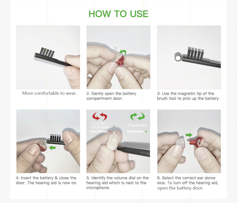 Pair of Invisible Hearing Aids Battery Powered in Canal Hearing Aids Suitable for Senior Citizens