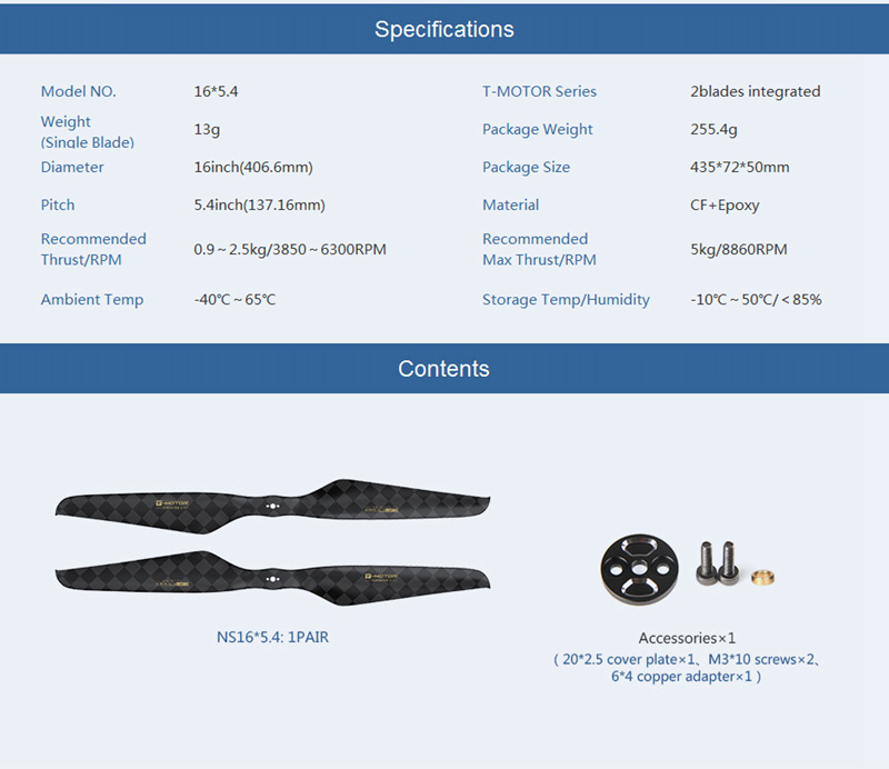 Pair of T-Motor Carbon Fiber Propeller 16x5.4" Ultra Light Multirotor RC Propeller CW CCW (NS16x5.4)