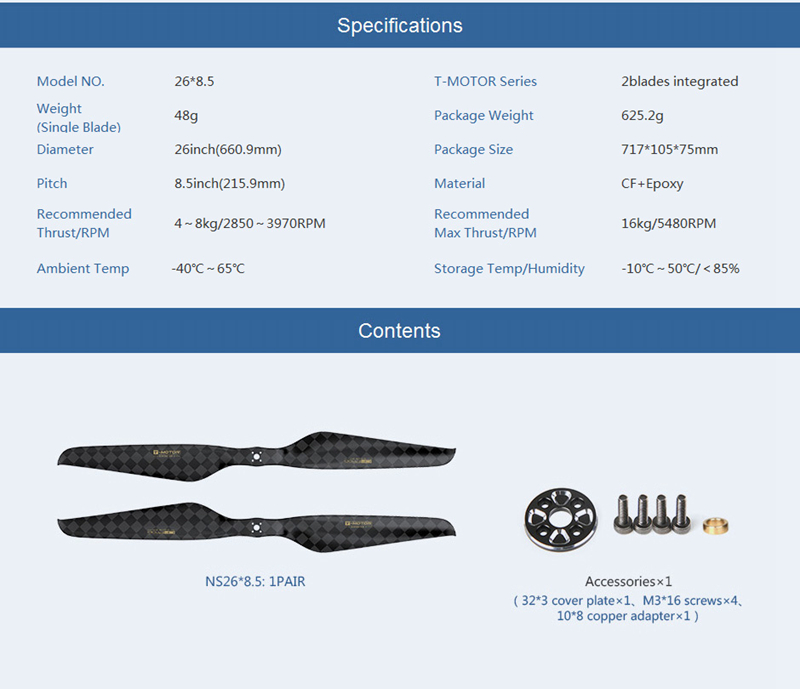 Pair of T-Motor Carbon Fiber Propeller 26x8.5" Ultra Light Multirotor RC Propeller CW CCW (NS26x8.5)